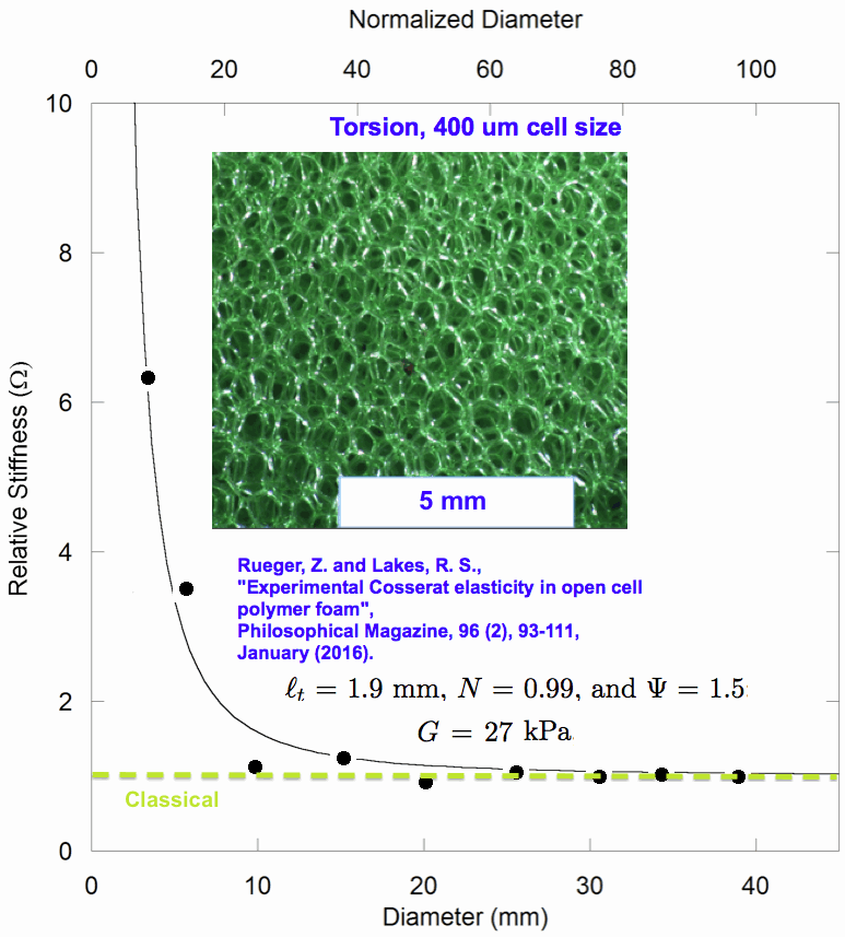 R. S. Lakes, Softening of Cosserat sensitivity in a foam: warp effects, International Journal of Mechanical Sciences, Volume 192, 106125, 15 February 2021.