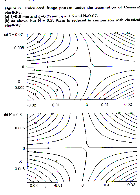 This image shows computer generated fringe patterns associated with warp. The degree of warp depends on the Cosserat elastic constants. Get pdf