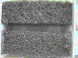 Wang, Y. C., Lakes, R. S., and Butenhoff, A., "Influence of cell size on re-entrant transformation of negative Poisson's ratio reticulated polyurethane foams", Cellular Polymers, 20: 373-385, (2001). Several foams of different cell-size, including Scott Industrial polyurethane foam with large cells (20 pores per inch, ppi, or 1.2 mm per pore, black), medium cells (65 ppi, or 0.4 mm per pore, green), and near-microcellular (100 ppi, 0.25 mm per pore, white), were processed over various time and temperature regimes to ascertain the role of cell size in transformation to negative Poisson's ratio materials. These foams were transformed successfully, and exhibited negative Poisson's ratio behavior. Poisson's ratio was measured using a new laser based setup. For all as-received (unprocessed) foams with different cell sizes, Poisson's ratio decreased with compressive axial strain and increased with tensile strain up to a maximum. The maximum Poisson's ratio in tension decreased as cell size increases. The strain at which maximum Poisson's ratio occurs, increased with cell size. In negative Poisson's ratio foams, minimum Poisson's ratios of -0.8, -0.5, and -0.4 for 20 ppi, 65 ppi, and 100 ppi foams, respectively were observed.