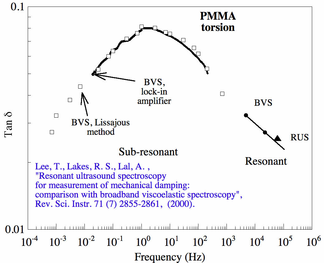 PMMA (Polymethy methacrylate) Viscoelasticity. A broadband spectrum.