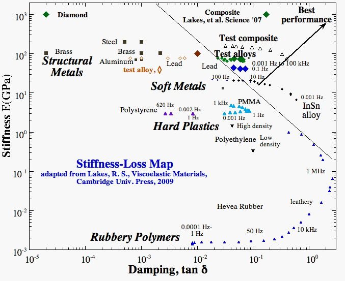 Stiffness / loss plot: new materials.